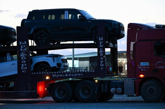 5月22日,在哈萨克斯坦扎尔肯特市一个交通停车场,一家运输公司的工作人员正在将货物装上一辆从中国进口的汽车。 ve车辆将运往哈萨克斯坦、其他中亚国家、俄罗斯等国家的主要城市。新华社记者 李仁子 供图